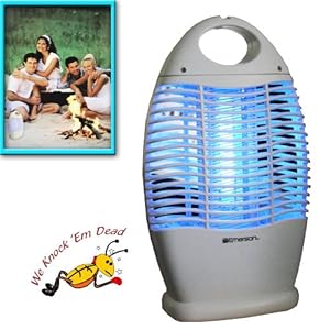 Emerson's Indoor/Outdoor Cordless Rechargeable Bug Zapper helps you enjoy life indoors/outdoors without irritating flying insects. The alluring ultraviolet light attracts mosquitoes, flies and gnats away from you and zaps them upon contact. Features: Easy to clean removable bug tray, foldable hanging hook for tents, table umbrellas, patios and decks, carry handle and included a rechargeable battery that lasts up to 10,000 hours, Portable ABS plastic, Measures 5 1/2" x 8 3/4" x 14 3/4" Easy to use AC Charger included. UL Listed