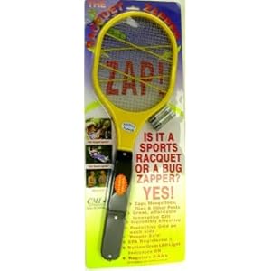 It looks like a sports racquet but is actually an effective way to kill flies, mosquitoes and other pesky bugs (and at the same time work on your tennis serve). A three-grid system is strung within the racquet head; when the middle and one of the outer grids comes in contact with an insect, it kills it instantly. Grid is designed to protect against accidental shock. Green LED indicates Zapper is ON. EPA registered. 2 AA batteries included.